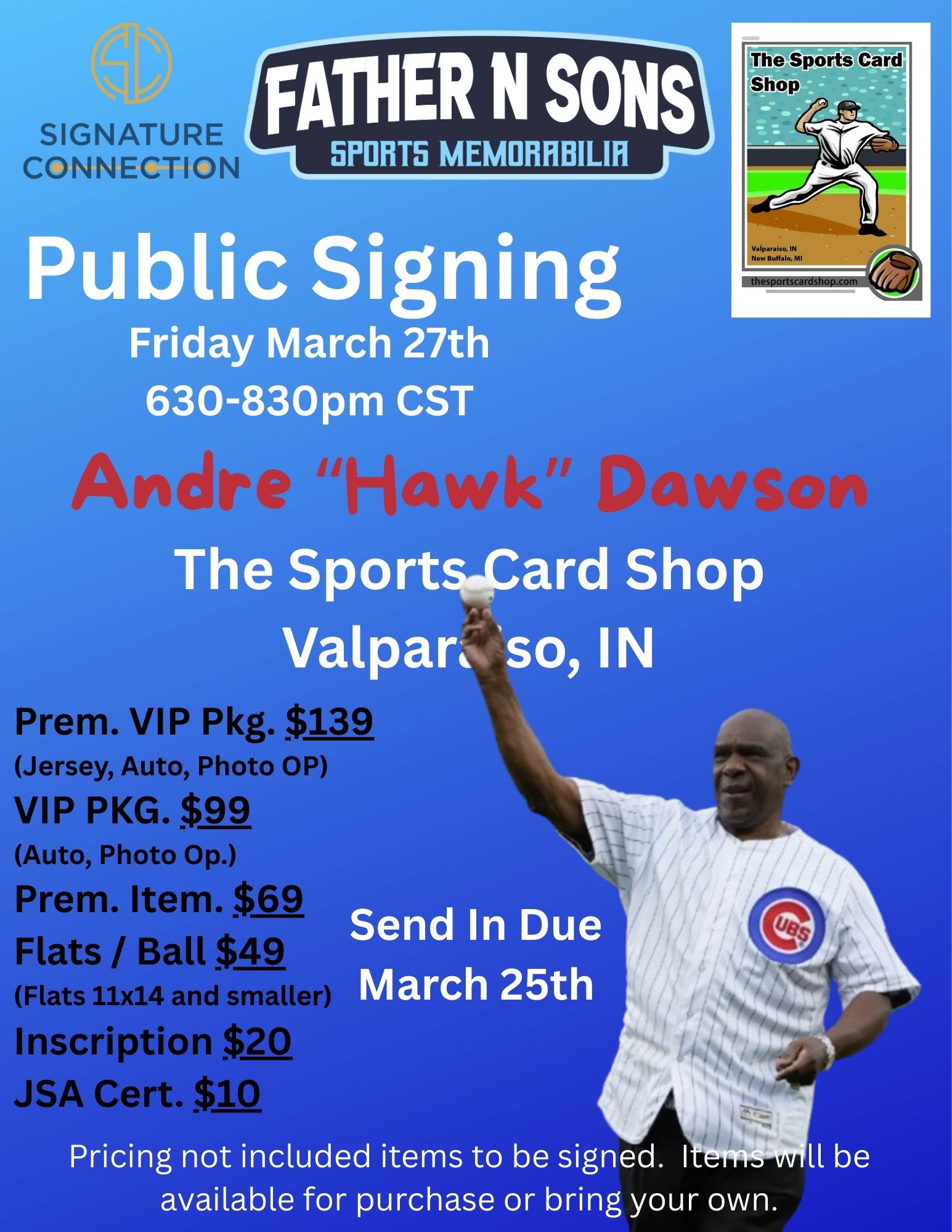 This package includes one (1) Premium Item Meet & Greet experience with MLB legend Andre Dawson.